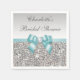 Chic Faux Teal Bow Silver Sequins Bridal Shower Napkin