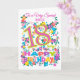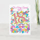 A very pretty, floral 18th Birthday Card for a 'Very Special Niece', with a Candy Pink and Green number 18 and the word 'Step Daughter in Candy Pink', with clusters of bright flowers and butterflies and 'Happy Birthday' in all the colors of the rainbow.