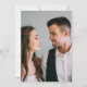 Beautiful white floral and greenery rustic wedding invitation features an elegant monogram and one full photo on the back.