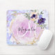 Chic Floral Blue Pink Gold Rainbow Marble Monogram Mouse Pad