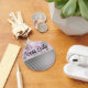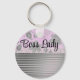 On this stylish key chain is a silver floral pattern on a pink backdrop where you can personalize it with a name, logo or phrase or keep as is with the words "Boss Lady" which is bordered by a silver necklace and below that are shimmery silver stripes for added chic.