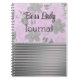 On this stylish notebook is a silver floral pattern on a pink backdrop where you can personalize it with a name, logo or phrase or keep as is with the words "Boss Lady" which is bordered by a silver necklace and below that are shimmery silver stripes for added chic.
