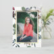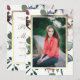 Classy and elegant floral botanical on white background with gold colour text photo graduation party invitation.