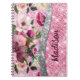 Make back to school fun with this Cute personalised Notebook. It is designed with elegant girly floral design in purple maroon and faux silver pink glitter.