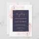 Chic Floral Pink Rose Gold Dark Blue Wedding Invitation