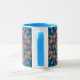 A pretty Coffee Mug, with a Blue lip and handle and a colourful Floral Rangoli Pattern on a Deep Blue Background that you can change if you wish. Part of the Posh & Painterly 'Rangoli' collection, this pattern will fit any of the mugs.
