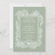 Illustration moderne dessinée à la main et élégante de couleur blanche fleurie avec faire-part de mariage de cadre sur un vert sage personnalisable. Parfait pour un mariage élégant et chic.