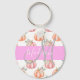 Chic Floral White Pink Peach Pumpkin Monogram Name Keychain