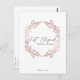 An elegant faux rose gold hand-drawn floral wreath to share the news of your marriage with your family and friends, and invite them to your wedding celebration with this "just eloped" wedding announcement invitation postcard written in calligraphy