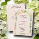 All in one wedding invitations feature your ceremony details on the front and more details on the back in chic white lettering. Beautiful watercolor flowers - white and green hydrangeas, pink and cream roses, daisies, small stems and leaves - on the front with your info on blush pink. MATCHING items in our store.