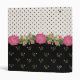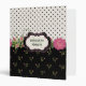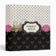 Elegant all purpose binder done with graphics of a pretty pink and green on black floral pattern, across the bottom and a black on off white polka dot pattern, across the top. A pink and green floral garland, runs across the middle of the binder, with a black decorative framed text area, on the front. Personalize the one letter monogram and text to suit your needs. All inserts and pages are sold separately. Great for office, home or school.