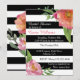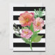 Elegant bridal shower invitation done in a bold black and white horizontal stripe pattern, with watercolor artwork of colourful flowers, in the top right corner and bottom left corner. Personalize the text for your bridal event.
