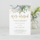 These elegant, minimalist post-wedding brunch invitations feature trendy watercolor greenery and botanical leaves on a clean white background with modern, faux gold handwritten script that says "we're married."