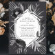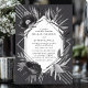 This sleek and modern wedding invitation features a geometric diamond frame adorned with elegant monochromatic florals. Set against a deep charcoal background, the clean lines and grayscale colour palette create a sophisticated and contemporary look. Perfect for couples seeking a stylish and refined wedding aesthetic, this design seamlessly blends modern geometry with timeless floral elegance.