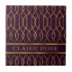 Stylish Moroccan lattice pattern in shades of gold on a purple background. * Not made with actual gold. * A nameplate at the bottom of the graphic features a customizable name template.