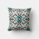 Chic geometric teal black ikat tribal pattern throw pillow