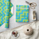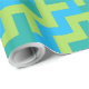 A stylish roll of luxurious Wrapping Paper, with a zigzag pattern in turquoise, neon green and emerald green. Part of the Posh & Painterly 'Blue Moons' collection; from a handpainted paper collage design by Judy Adamson.