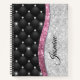 Make back to school fun with this Cute personalized Notebook. It is designed with elegant girly faux silver and pink glitter and rhinestones bling with tuffted black.