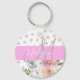 Chic & Girly Floral White Pink Grey Monogram Name Keychain