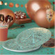 Gold glittery feathers on a teal green backdrop where you can personalize your event along with glittery gold edging on the top for extra glitz. Chic glam vibes.