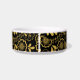 Personalised gold and black victorian floral lace patterned pet bowl. You can customise the background colour and nameplate with a colour of your choice.