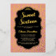 A chic sweet sixteen birthday party invitation that is sure to make a lasting impression. This stylish design features a fun leopard print pattern adorned in pressed gold foil on a pink background overlayed with a black frame for your personalized text. In addition to the leopard print, the words "Sweet Sixteen", your personalized text and a little crown are also accented in pressed gold foil. Easily change the background colour from pink to any other colour in the Design Tool.