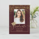 Chic gold confetti burgundy typography graduation, add one of your photo. Class of 2022! Celebrate the graduate. With faux gold foil confetti, geometric frame and cap.
