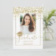 Chic gold confetti white typography graduation, add one of your photo. Class of 2022! Celebrate the graduate. With faux gold foil confetti, geometric frame and cap.