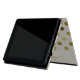 Elegant and stylish this iPad folio style case is done in a chic linen look, with gold tone polka dots. Personalize the golden brown text running down the front right edge, for yourself or as a beautiful gift idea.
