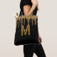Chic Gold Dripping Glitter Monogram Name Tote Bag