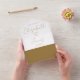 This all-in-one minimalist wedding invitation features elegant gold typography. The invitation includes a perforated RSVP card with your wedding website QR code. Designed by Thisisnotme©