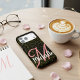 Step into luxury with the Chic Gold Glitter Black Personalized Pink Monogram Case-Mate iPhone Case.