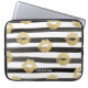 Chic Gold Glitter Lips & Black Stripes Monogram Laptop Sleeve