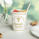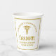 This chic gold custom medical school graduation party paper cups features modern typography for a class of 2025 nursing graduate. Customize with your graduating year under the medical caduceus for great personalized nurse or doctor decor.