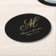 Chic Gold Monogram Script Black Wedding Round Paper Coaster