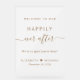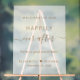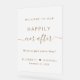 Chic panneau de mariage acrylique gelé avec "Bienvenue à notre heureux après" dans un mélange de typographie or moderne et un élégant script or avec des swashes, "nous sommes tellement heureux que vous soyez ici", vos prénoms se sont réunis par un coeur et votre date mariage.