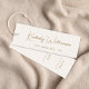 Elegant and chic light cream clothing, accessories, jewelry, boutique, etc., price hang tag with a minimalist vibe featuring your name or brand showcased in a stylish gold colored signature script. Add additional text below in simple modern typography. On the back, you can customize the size and price templates by editing in the design tool. Please note that Zazzle does not punch the hole or provide string.