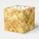 Elegant wedding favour box done in a gold tone tile pattern. The top of the box has a decorative gold and white text plaque, with black custom text ready to personalize. Lovely little gift box for candies and anything else you want to give your guests.