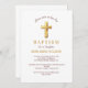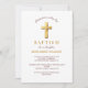 Chic Gold Typography Minimalist Cross Baptism Invitation