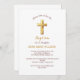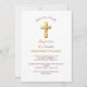Chic Gold Typography Minimalist Cross Baptism Invitation