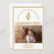 This elegant veterinary school graduation party invitation features gold typography for a class of 2024 graduate above your student photo. Customize with your graduating year under the veterinary medical caduceus and photograph for chic personalized veterinarian invite.