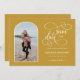 Modern and elegant design printed chic gold script calligraphy arched frame wedding photo save the date that can be customized with your text. Please click the "Customize it" button and use our design tool to modify this template. Check out the Graphic Art Design store for other products that match this design!