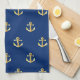 Chic Gold Yellow Anchor Pattern On Dark Navy Blue Kitchen Towel