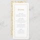 A delicate golden colour scheme creates a chic romantic feel to these vintage meets modern wedding menus. The front features modern typography in a buttoned-up layout while the back pops with ditsy floral blooms. Customize to your own event and pair with the coordinating suite pieces.