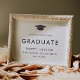 This chic grad cap congratulations graduate poster is perfect for a modern graduation party. The simple design features classic minimalist black and white typography with a black and gold watercolor graduation hat.