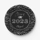Chic Graduation Black Silver Glitter CLASS OF 2021 Paper Plate