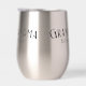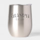 This is a "Modern Chic Grandma" Style Thermal Wine Tumbler with Black Typography! Customize with her Personal Grandmother Name. The classic curved arc typography in a Distinctive, Stylish font gives this a truly Unique look! And personalize further with the very year her first grandchild was born, celebrating the milestone of becoming a Grandmother! Whether you are gifting as an announcement of pregnancy, or at the arrival of her grandchild, this carries a sentiment of pride and joy, balanced with a modern, "cool grandma" aesthetic that isn't overly flowery or traditional... Perfect for that EXCEPTIONAL Grandma in your life!