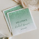 These chic bridal shower paper napkins feature a sparkly green faux glitter drip border and green ombre background. The words "bridal shower" appear in elegant green handwriting script with flourishes at the beginning and end. Personalize the napkins with the name of the bride-to-be and the shower date in green sans serif font.