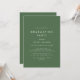 This chic green graduation party invitation is perfect for a modern outdoor party. The simple design features classic dark forest hunter green and white typography with a rustic boho feel. Customizable in any colour.