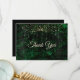 Chic green silver faux glitter thank you card